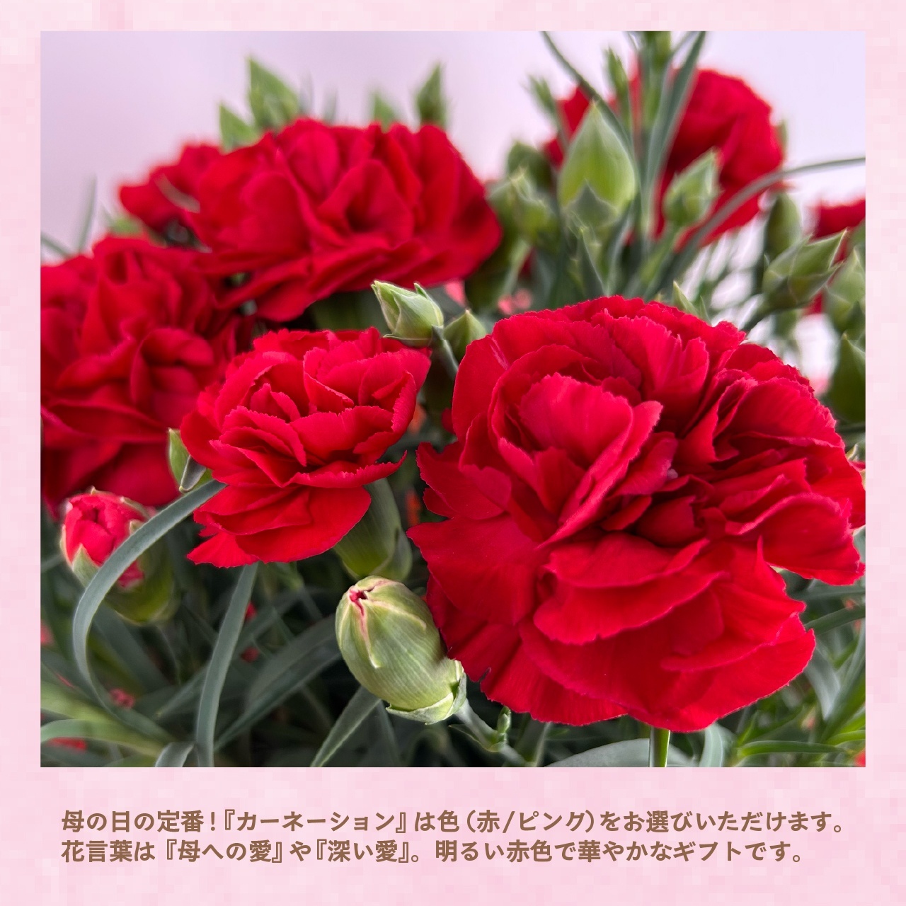 母の日といえば!やっぱり定番はカーネーション。